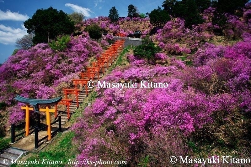 最後に「雪舟観」と呼ばれる宮津エリアの獅子崎稲荷神社へ向かいました。春には山肌一面をピンク色に染める「みつばつつじ」の群生が見られ、連なる鳥居とのコントラストが楽しめます。